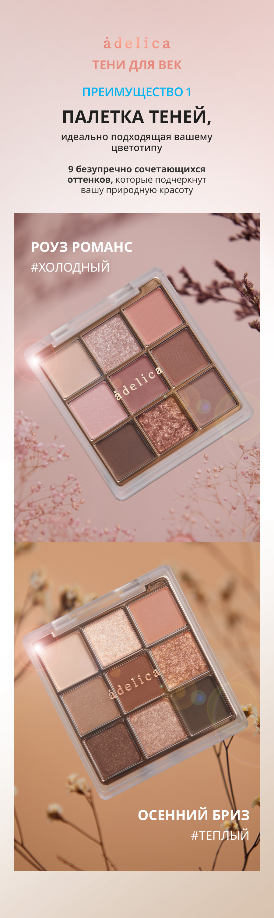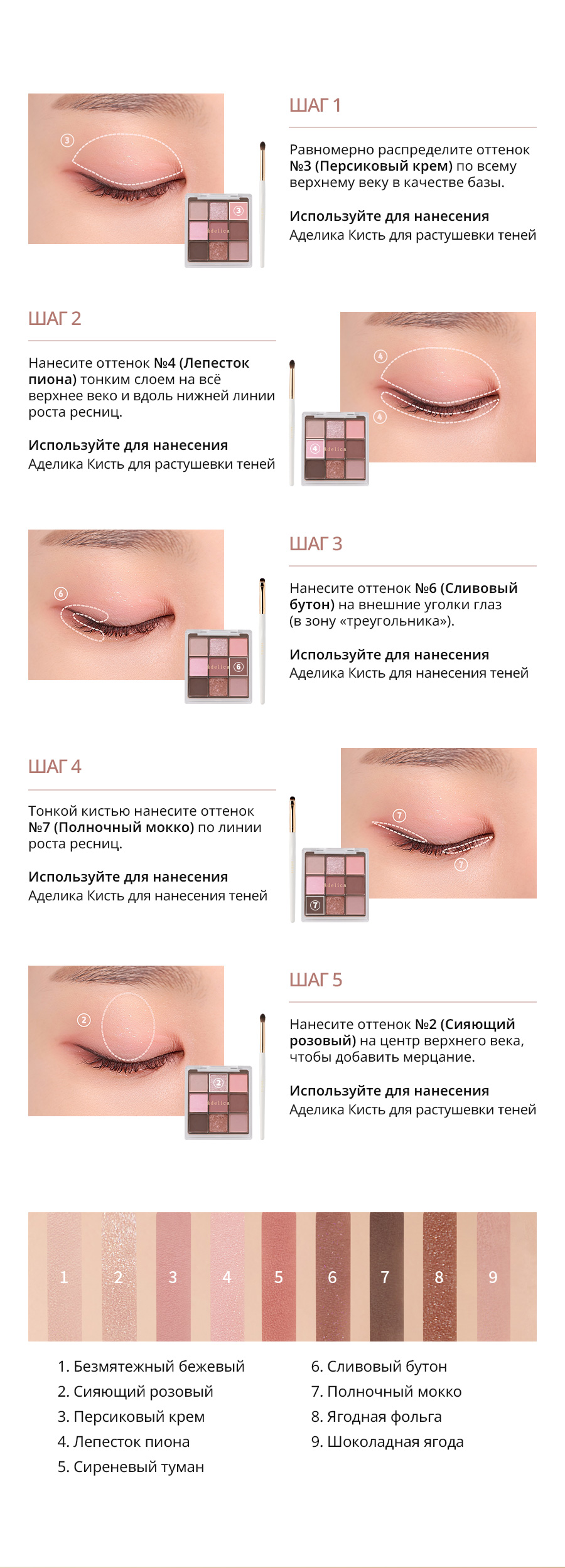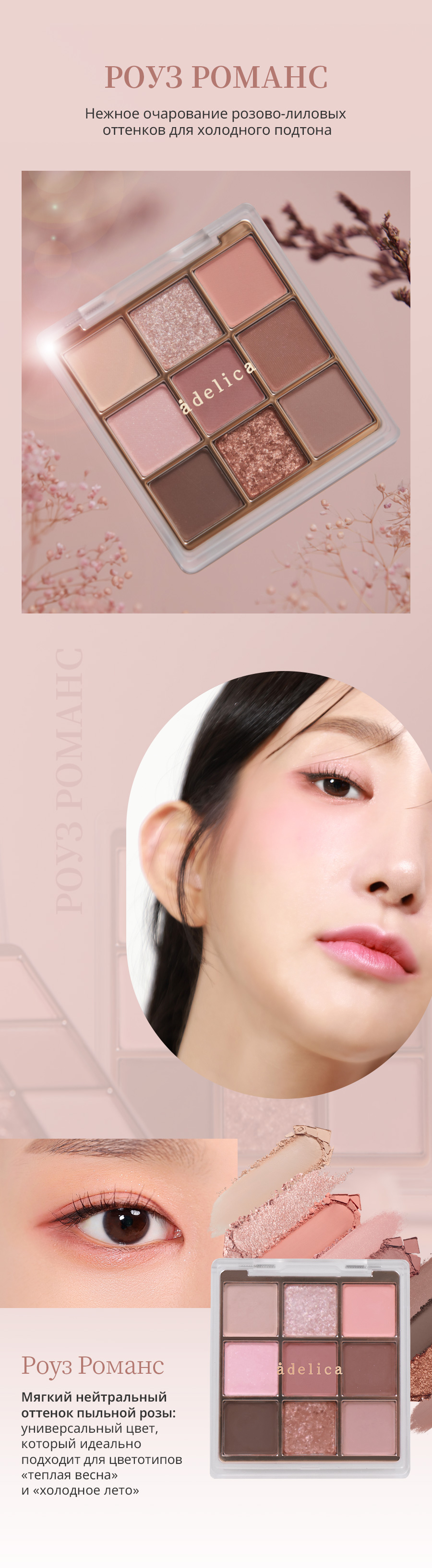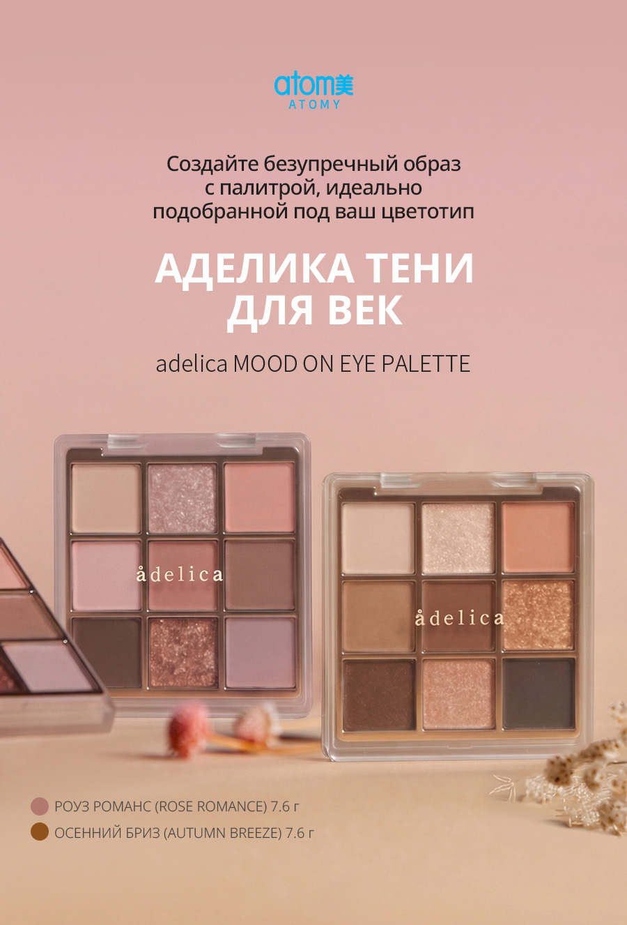 Атоми Аделика Mood-on Тени для век Роуз романс