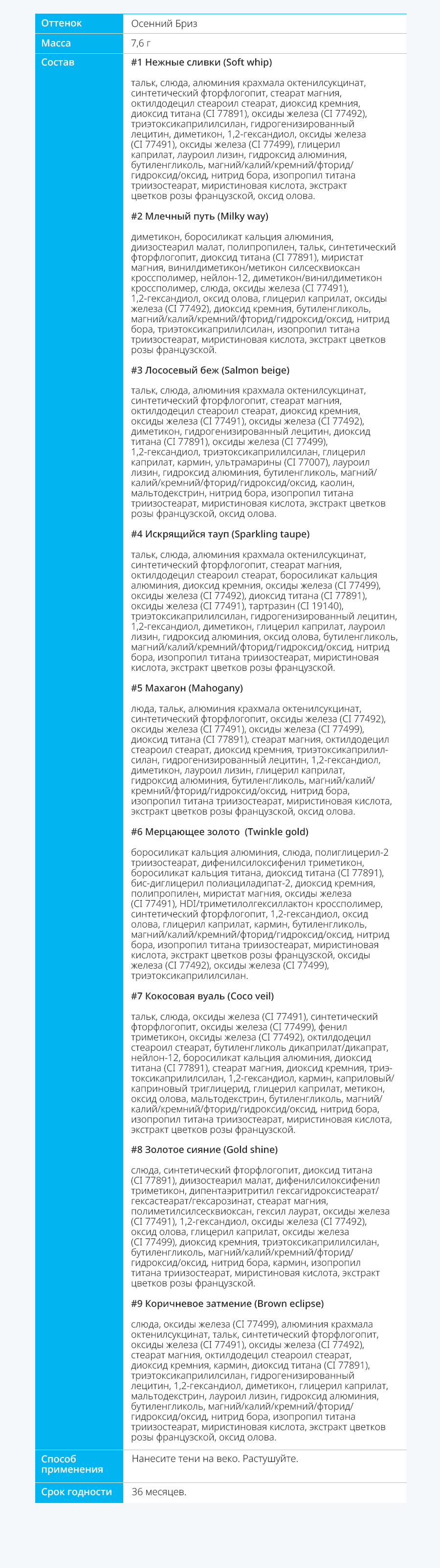 Основная информация о продукте